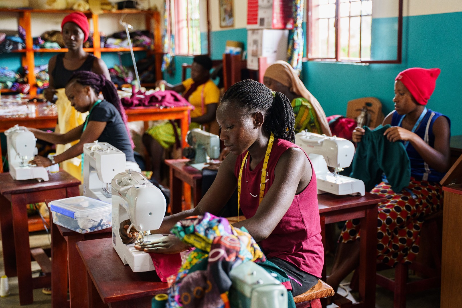 Nuestro taller de costura sigue creciendo. Actualmente, 30 jóvenes acuden diariamente a la escuela de costura en turnos completos, donde aprenden confección, diseño y habilidades profesionales.